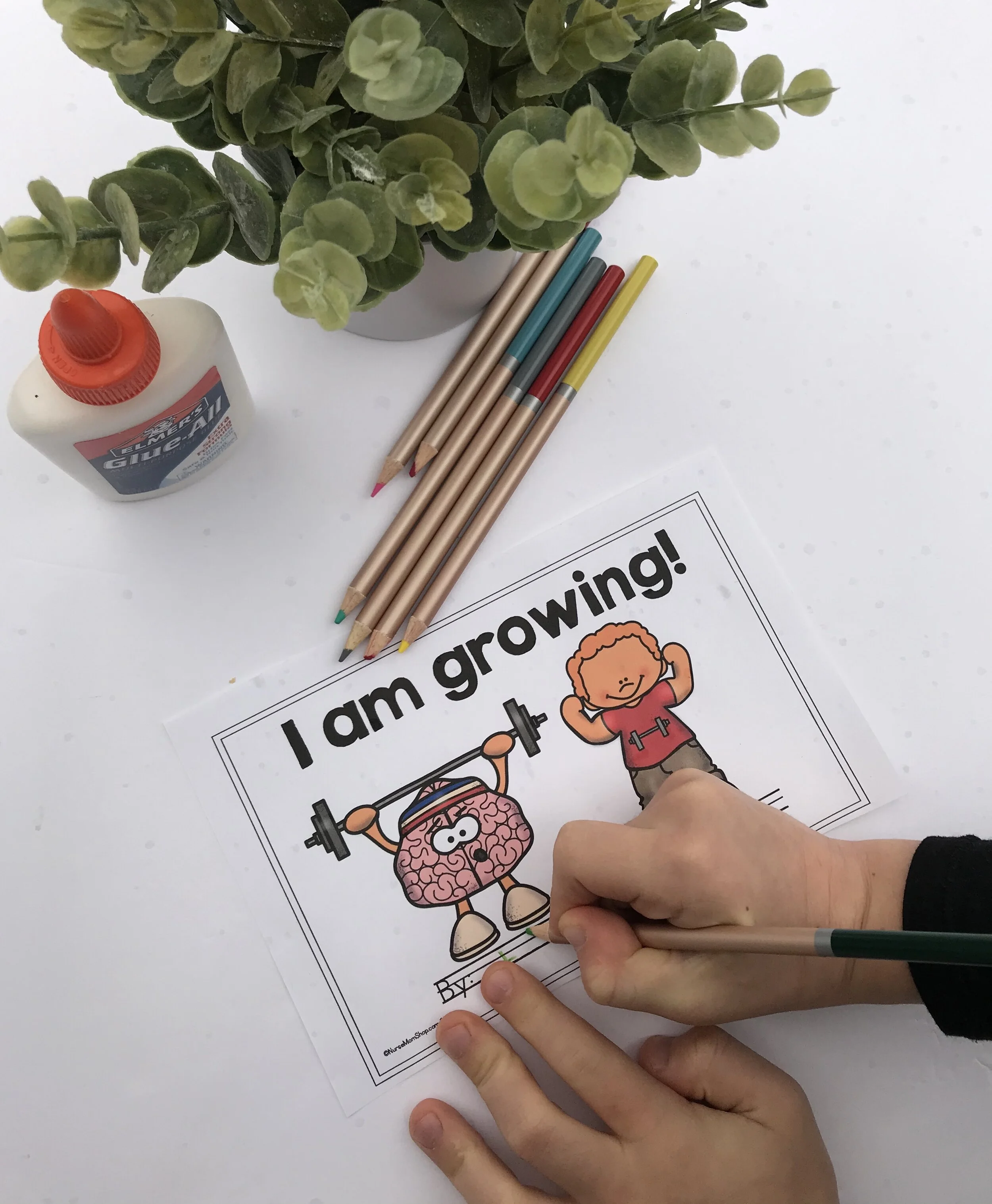 Now comes the fun part! Moving the concepts of growth into the cognitive realm. From here I move into the third section of the unit, “Your Brain is Growing Too!” This section introduces growth mindset which is the concept that our intelligence and abilities are not fixed but rather are capable of growth, change and progress.